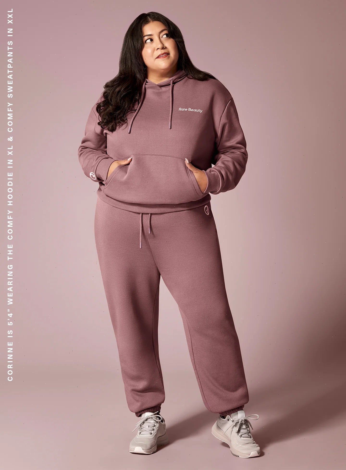 Corinne is 5’4” wearing the Comfy Hoodie in XL & Comfy Sweatpants in XXL